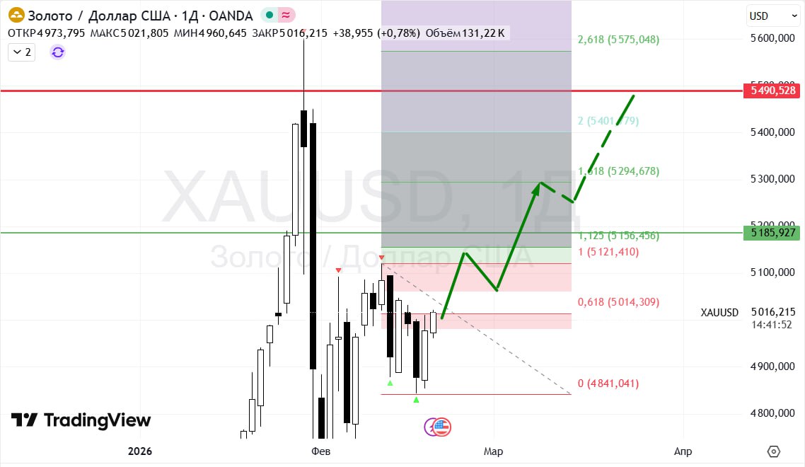 Техническая картина на XAUUSD указывает на завершение локальной коррекции на D1